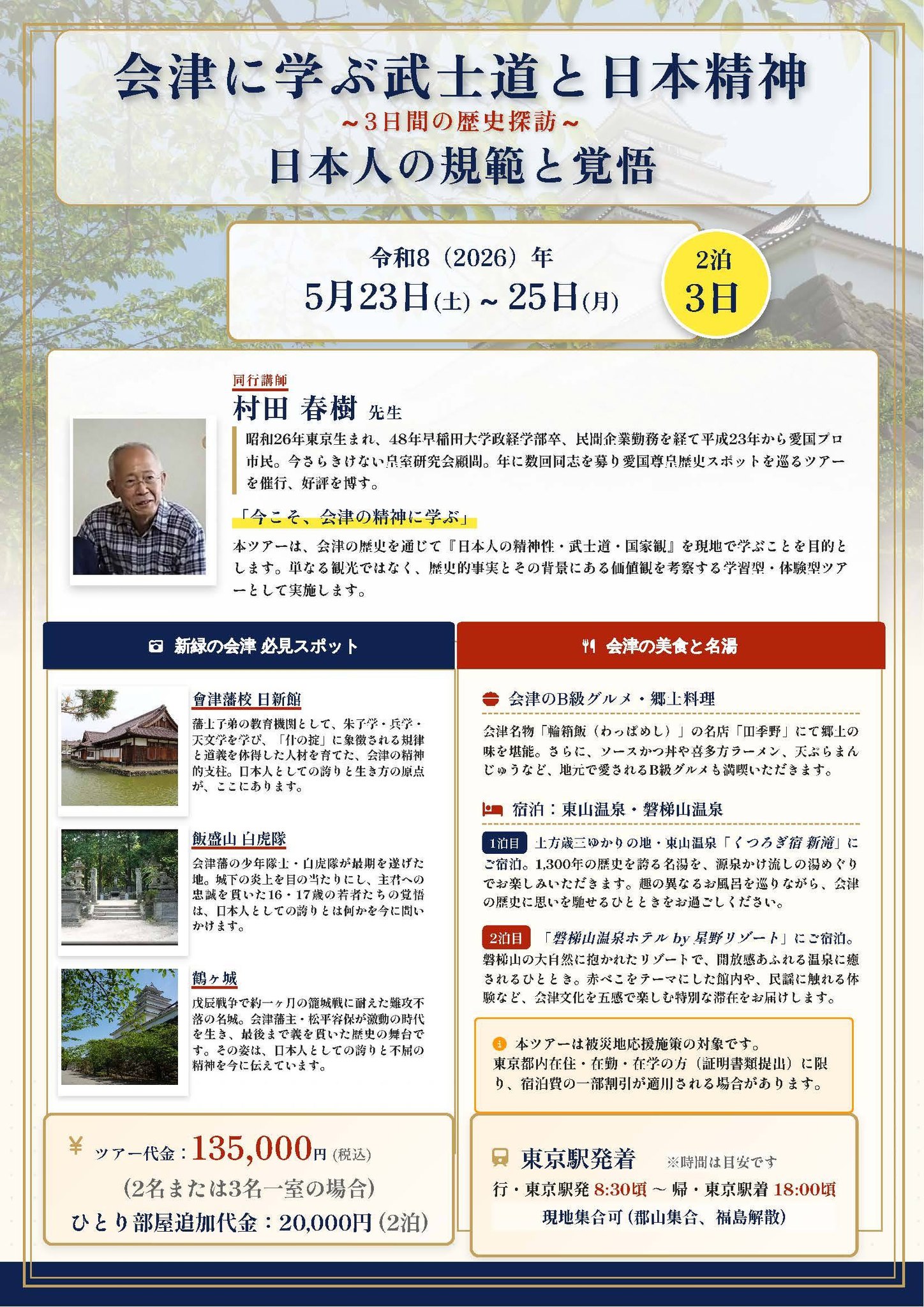 5月23日(土)~25日(月)【新しい歴史教科書をつくる会】宿泊ツアー 会津に学ぶ武士道と日本精神